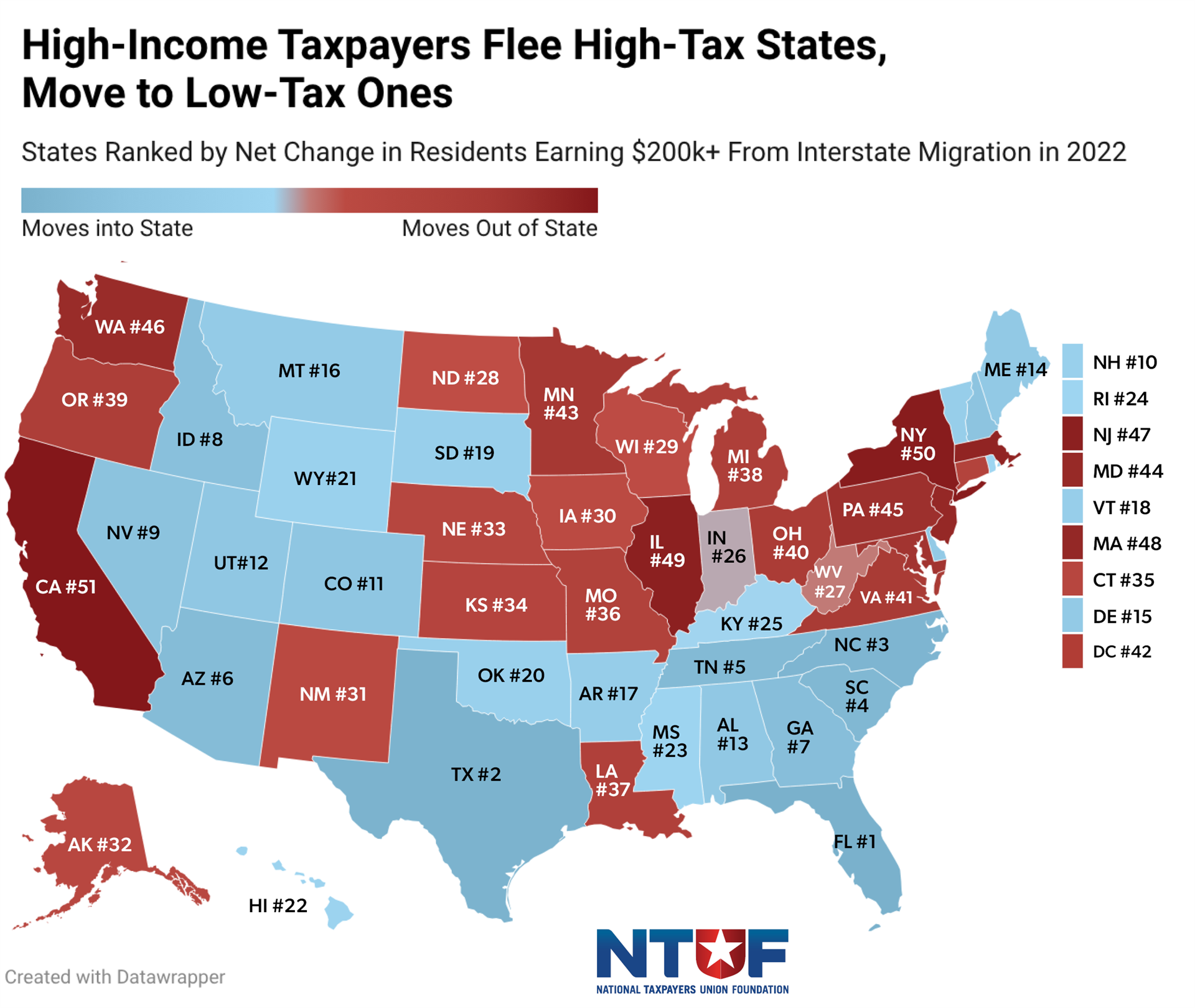 [1] Hawaii has the second-highest income tax rate, but tends not to have a high volume of migration due to its small population and physical distance from the mainland.