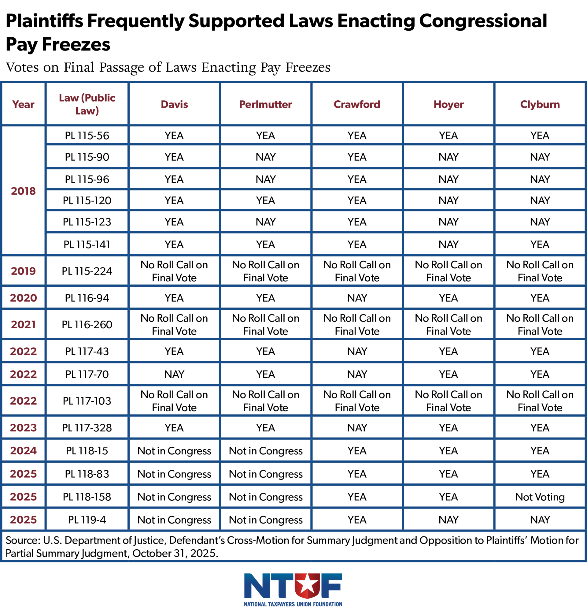 The legal questions in this case are significant, but the underlying facts are straightforward. Members of Congress repeatedly chose to freeze their own pay. Now, a handful of members seek to undo those decisions through litigation that could impose significant costs on taxpayers and add to the long-term debt.
