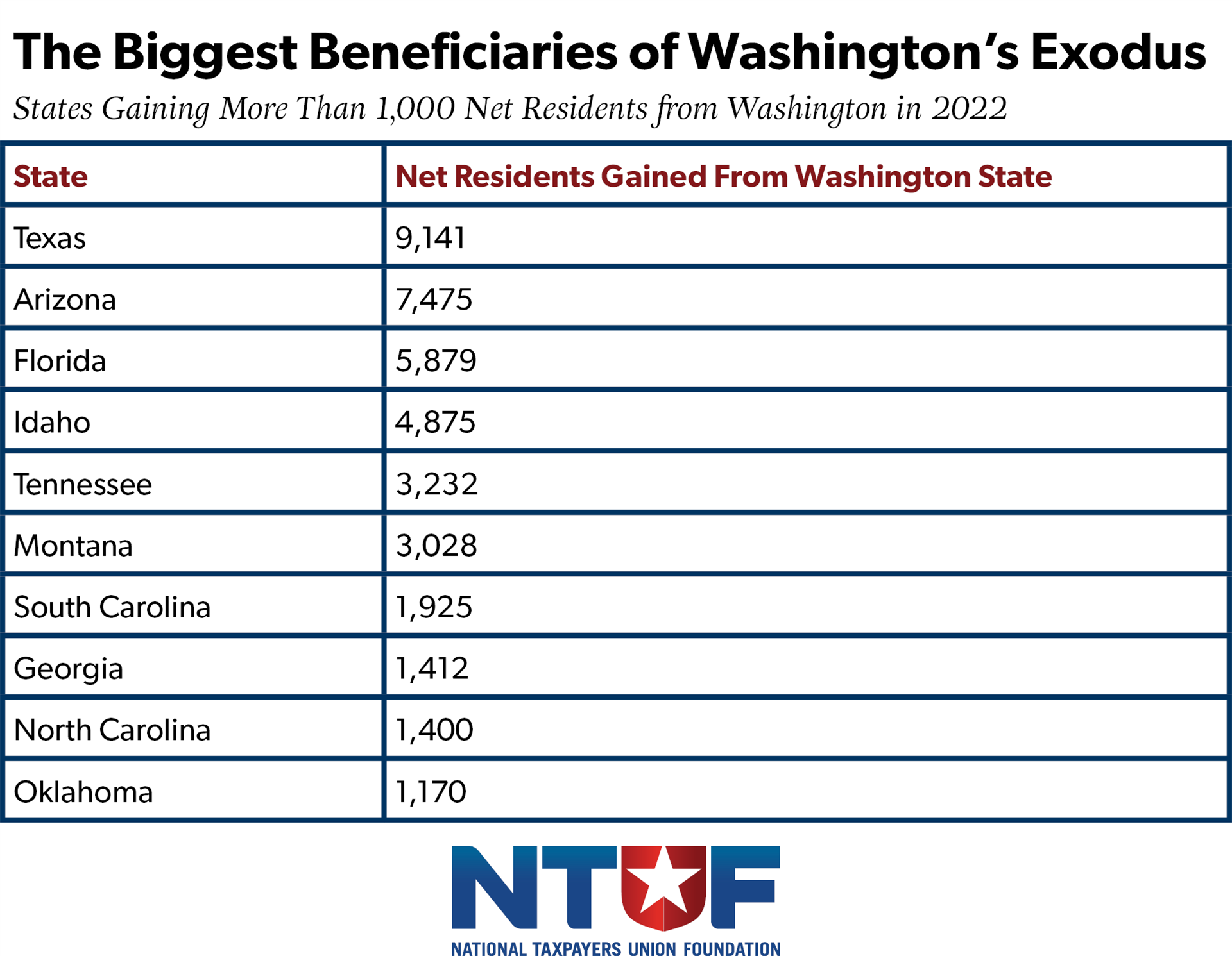 Washington should be profiting from the follies of other West Coast states, with the bar to be more competitive than California or Oregon practically on the floor. Yet, while Washington gained about 21,000 residents on net from these two fellow coastal states in the latest IRS data, it lost even more to three states that are nowhere close: Texas, Arizona, and Florida. Other major beneficiaries of Washington’s generosity include Idaho, Tennessee, and Montana.