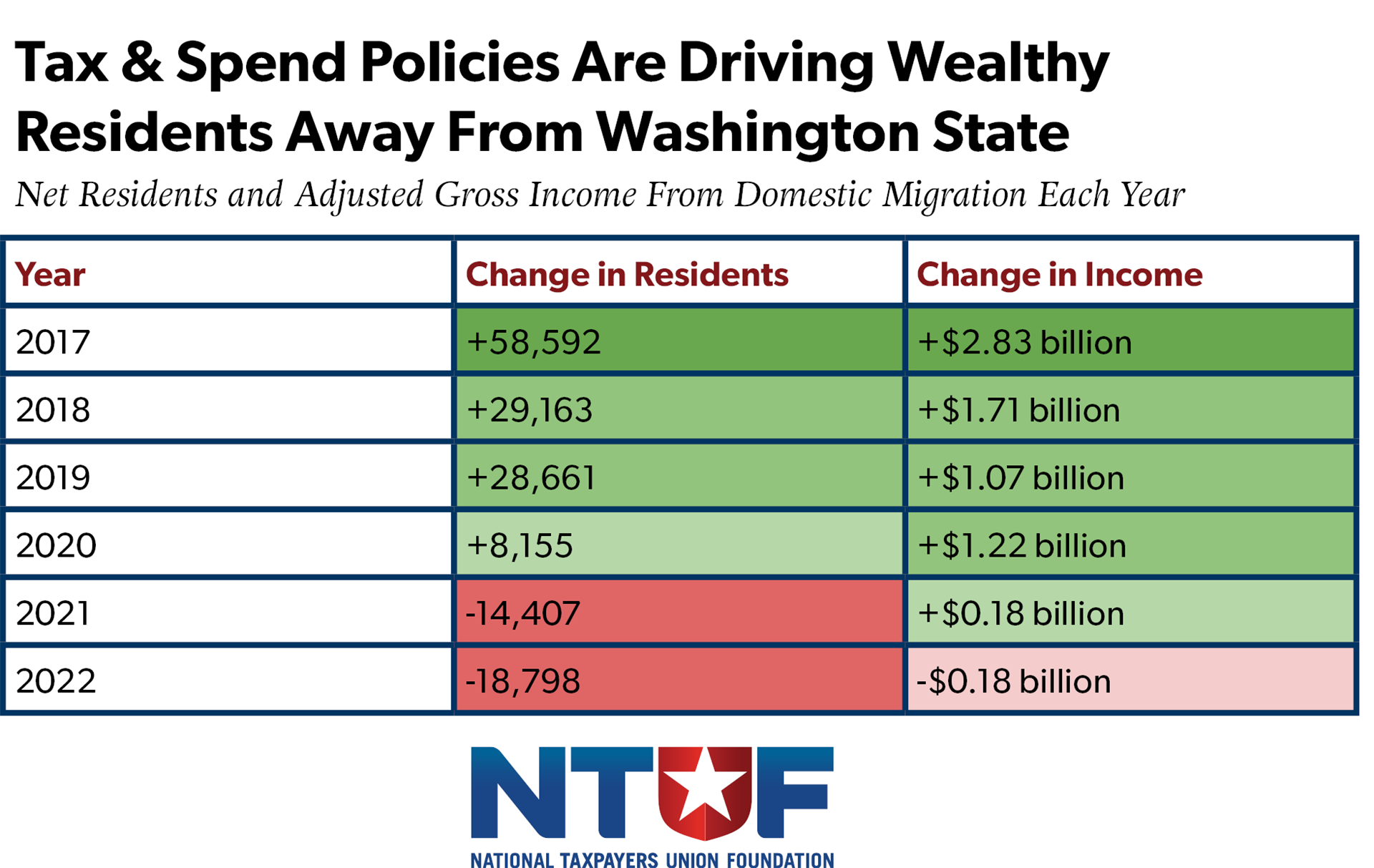 No state is a better case study in how tax-and-spend policies can devastate a once-prosperous and competitive state than Washington. Before 2020, Washington consistently gained more new residents from interstate migration than it lost. Starting in 2017, that positive trend rapidly began to slow, then flip upside down.