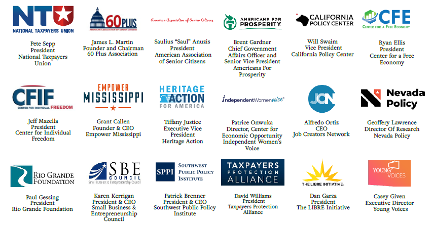 On behalf of the undersigned organizations, representing a wide array of taxpayer, free market, and limited government advocates, we write to express our strong support for the American Franchise Act. This legislation protects the franchise business model by clarifying the joint employer standard, thereby providing certainty for small business owners and workers across the country. We are proud to endorse the American Franchise Act and encourage all members to co-sponsor this important bipartisan pro-taxpayer legislation.