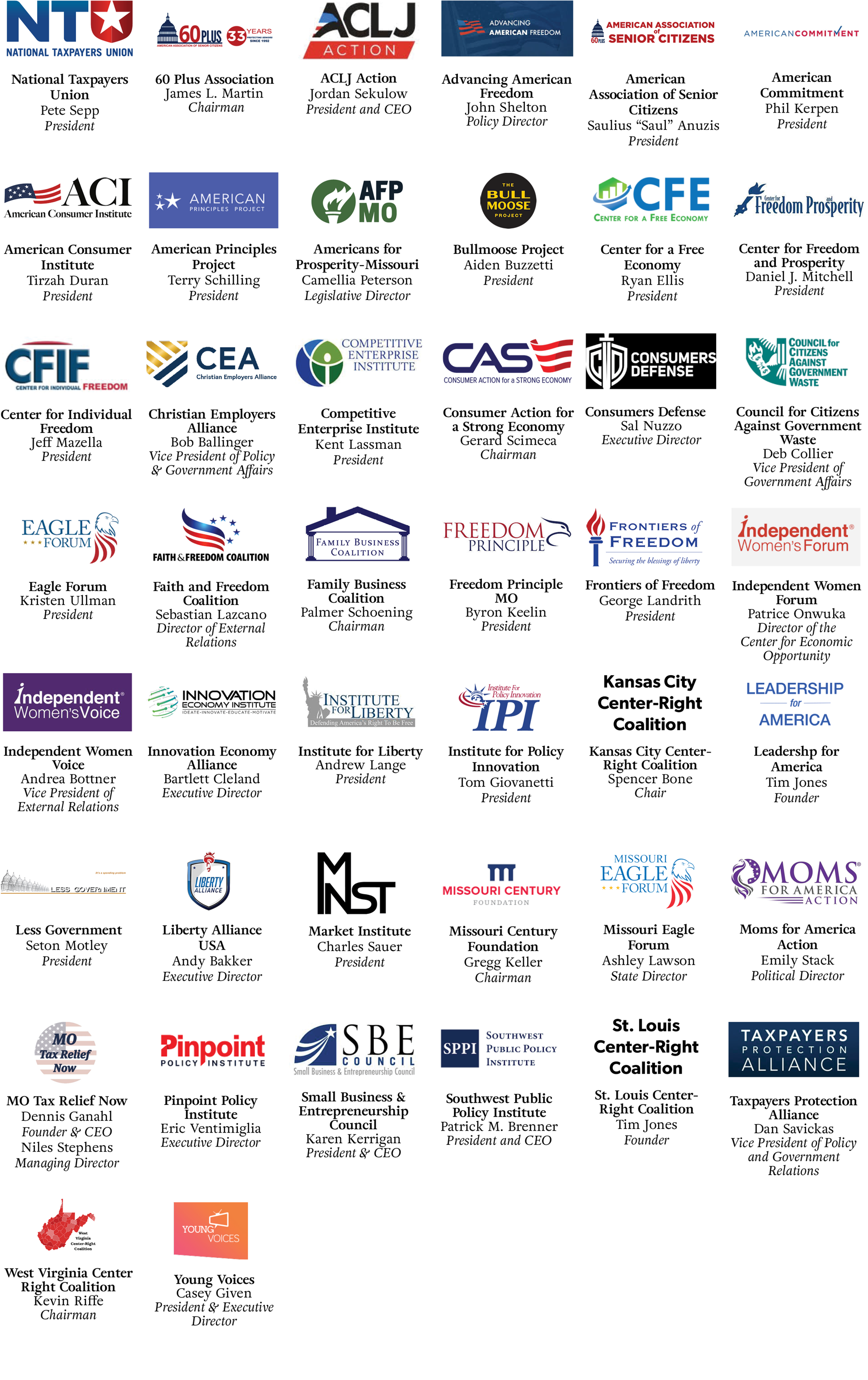 On behalf of the undersigned organizations, we write to express our strong support for Governor Mike Kehoe’s Missouri Promise to responsibly phase out the state individual income tax and replace the 1931-era tax code with one that reflects how Missourians live and work today.
